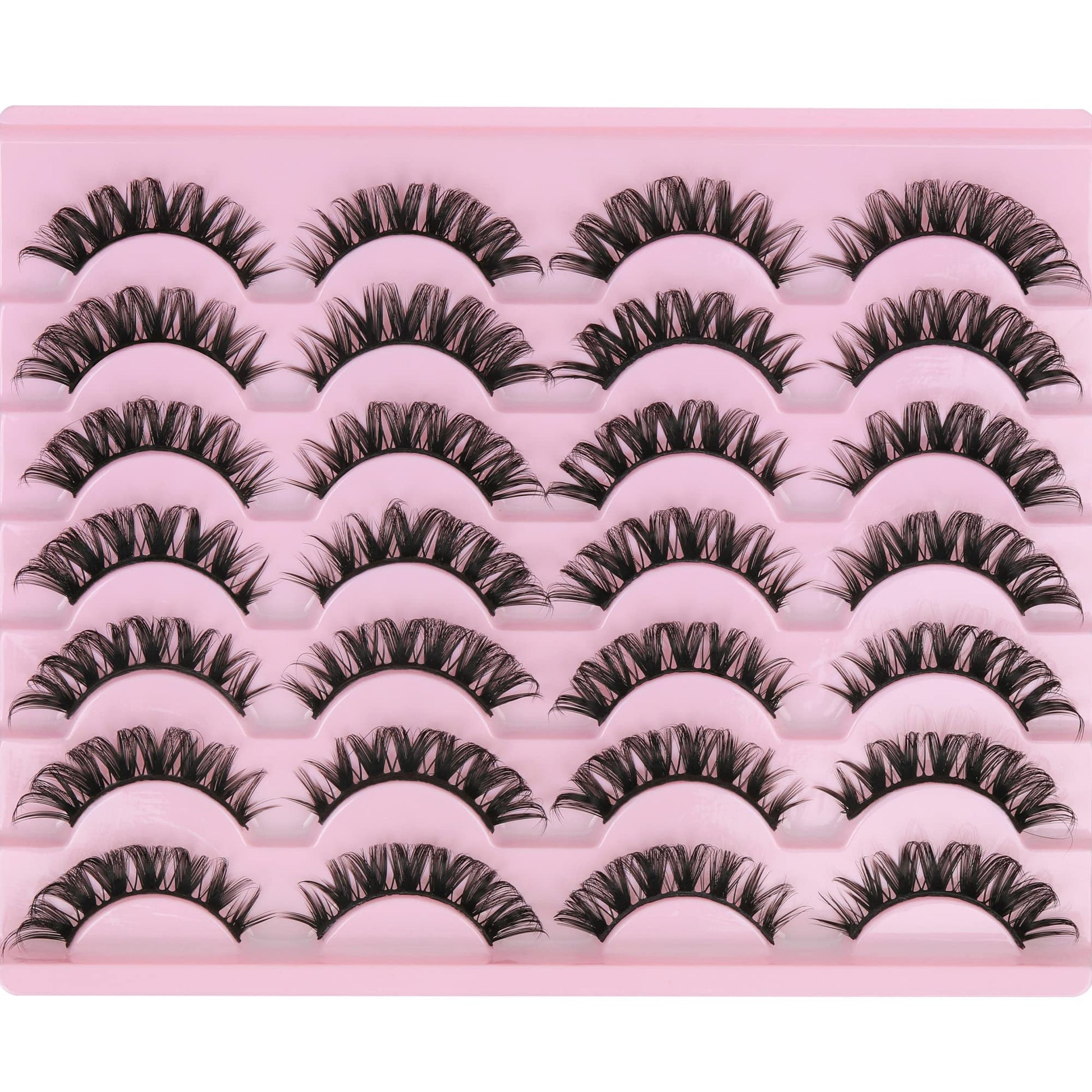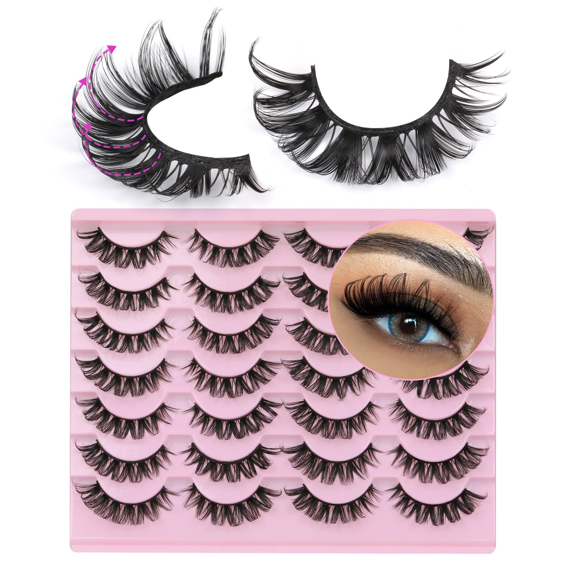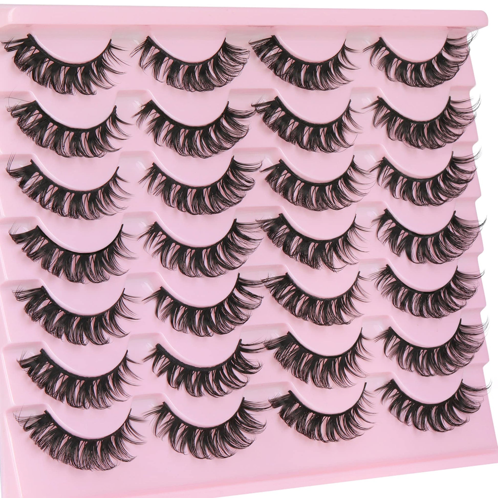 14 Pairs False Eyelashes Russian Strip Lashes Natural Look Fake Lashes Wispy Cat Eye Lashes 3D Curl Strip Eye Lashes by Focipeysa