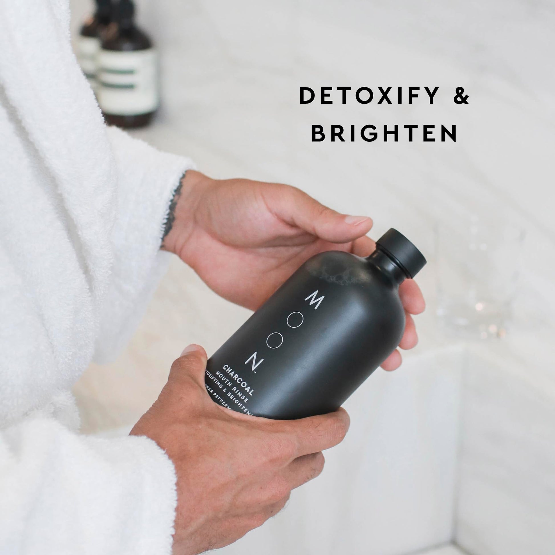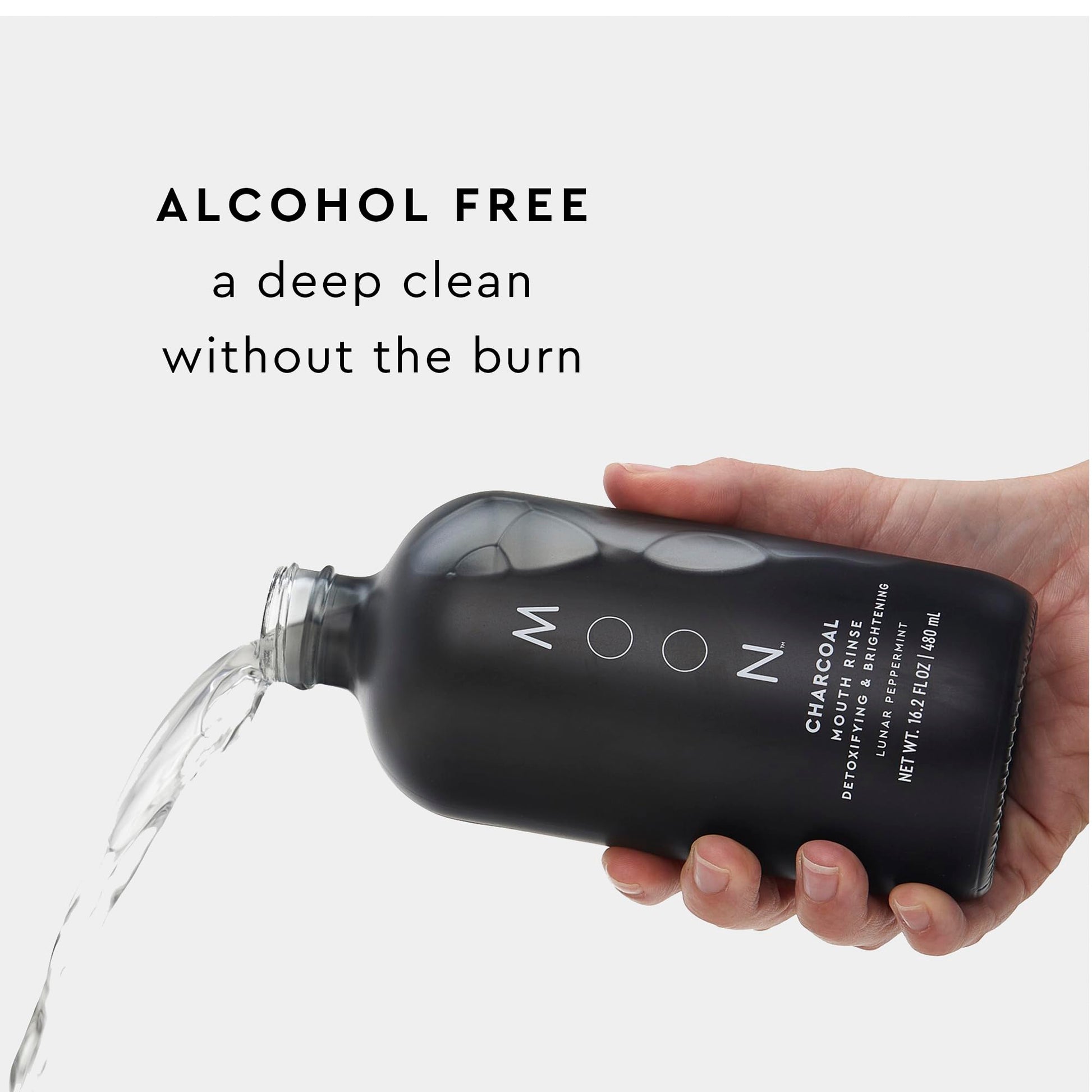 - ULTRA-BRIGHTENING + DETOXIFYING MOUTH RINSE: Cleanse, brighten, and reduce plaque with MOON's Charcoal Mouth Rinse. No-mess formula brightens and protects the mouth’s natural biome with non-abrasive charcoal and an antioxidant-packed formula that's gentle on enamel.