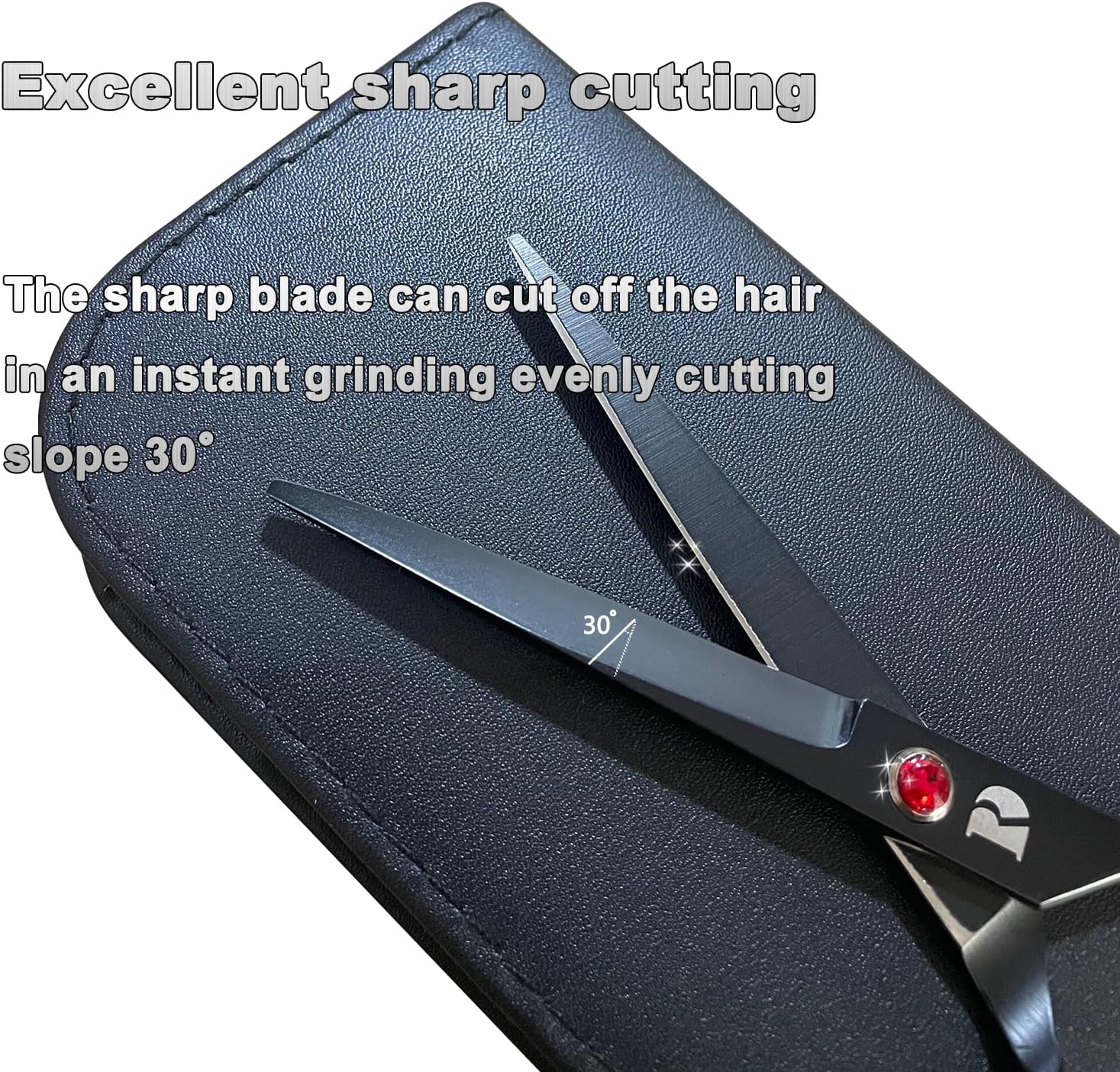 - Sharp Blade Shears for Hair Cutting : Our Haircut Shears Set blade is handmade by craftsmen with 20 years of experience, with clear and visible blade lines. Sharp hair cutting kit Shears blades can instantly cuttting hair. Thinning Shears rate of 20-25% by 28 teeth hair thinning scissors.The hair cutting kit uses a VG10 top steel regulator to adjust the tightness, wear resistance, and corrosion resistance. The hair clippers are equipped with high-quality rubber silencers, making them quiet and comfortable.