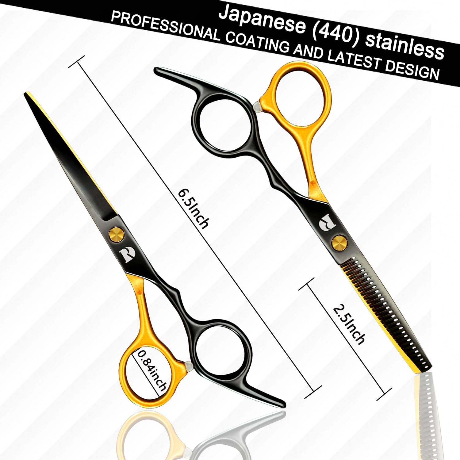 - Professional Hair Cutting kit:Javenproliu Hair scissors Kit made of japanese 440c stainless steel. Our hair cutting kit have sharp blades that do not damage or tear the hair ends. The surface of hair scissors is made with color electroplating technology to prevent rust and fading. Suitable for cutting wet or dry hair. We focus on hair scissors, quality, and every customer.