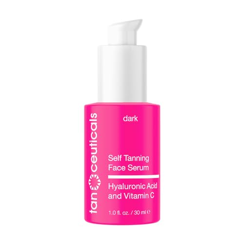 Tanceuticals Self Tanning Face Serum - Color-Correcting and Hydrating with Vitamin C & Hyaluronic - Facial Self Tanner for Natural Looking & Long Lasting Sunless Tan - 1 oz (Dark)