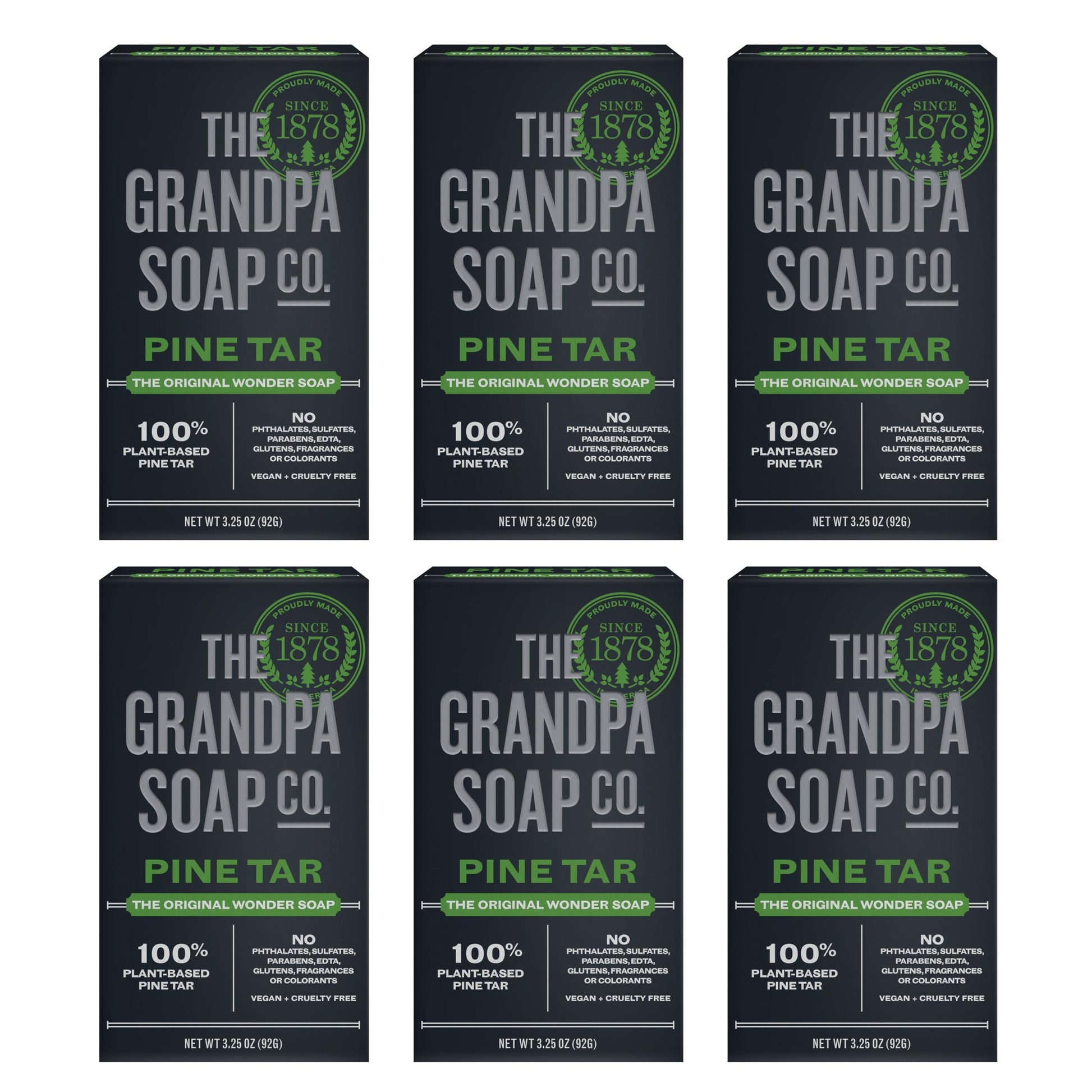 The Grandpa Soap Company Pine Tar Bar Soap for Men- Made With Pine Tar Oil, 3 in 1 Cleanser Deodorizer and Moisturizer, Dermatologist Tested, Safe for Sensitive Skin, 3.25 Oz, 6 Pack