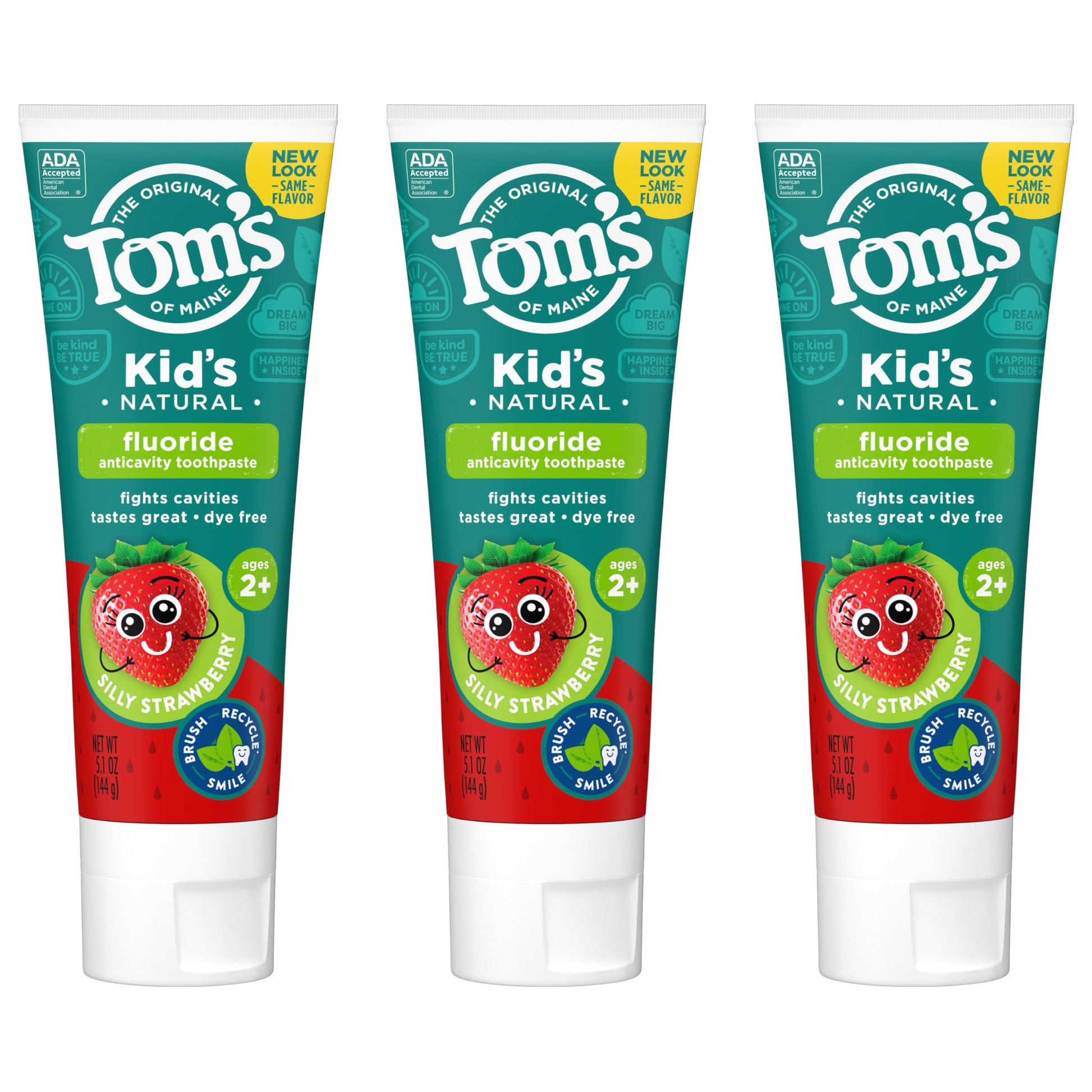 - WHAT YOU'LL GET: Three 5.1-ounce tubes of Tom's of Maine Kids Fluoride Toothpaste in Silly Strawberry Flavor