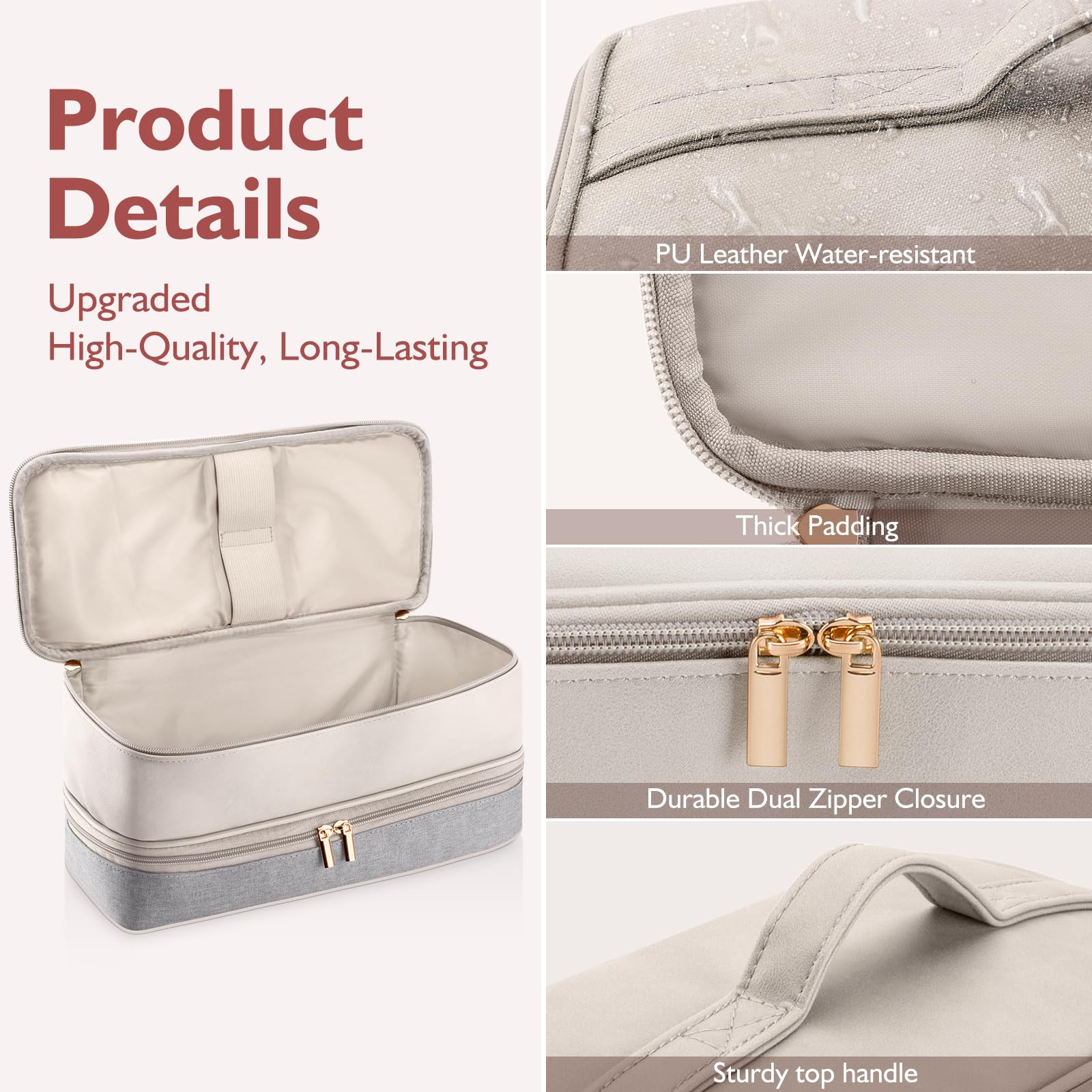 - HIGH-QUALITY AND PROTECTIVE: This double-layer hair dryer storage case is made of high-quality fabric and PU leather. The combination of high-end gray fabric and beige leather has a certain aesthetic and fashion appeal. The inner layer is soft and scratch resistant hair dryer and accessories. The outer layer has the characteristics of scratch, dust, and water resistance.