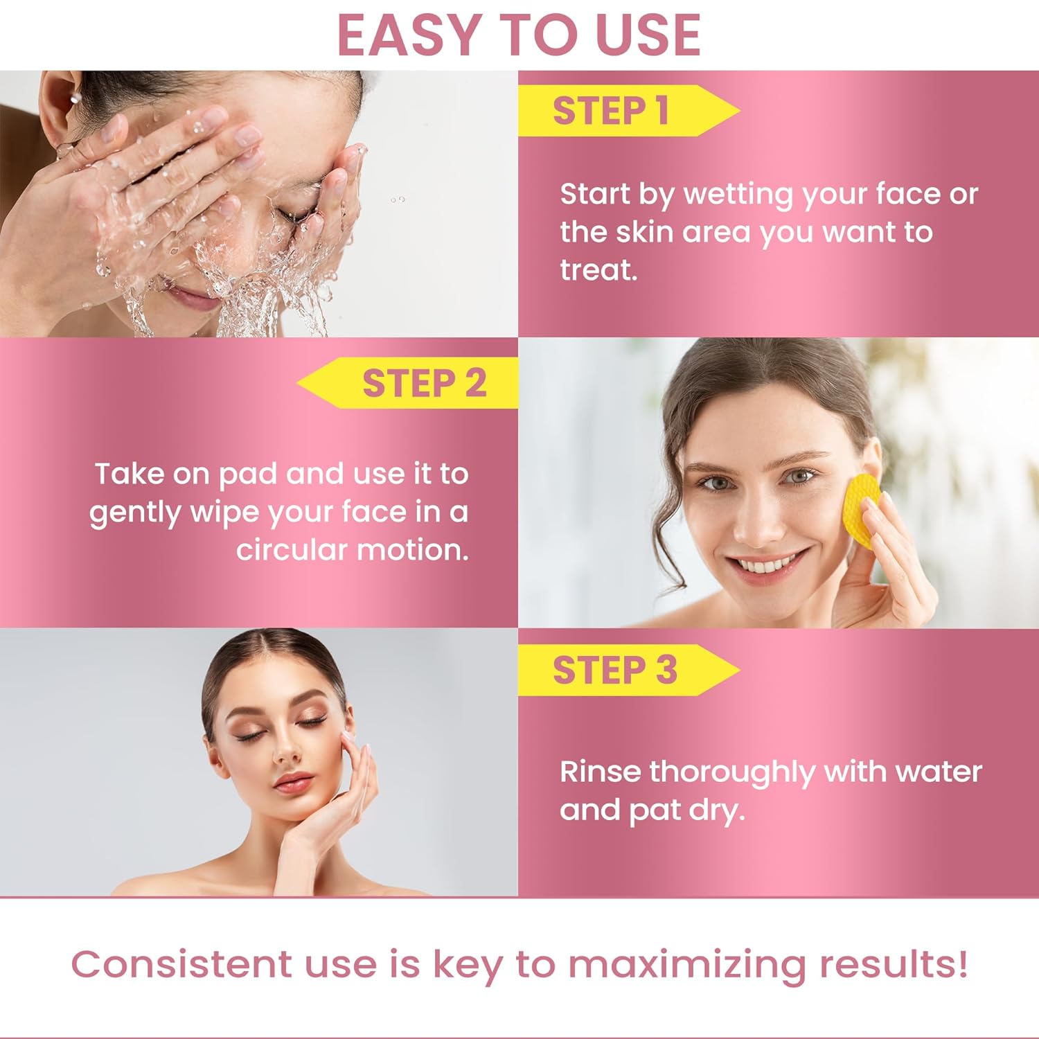 - CRAFTED WITH NATURAL BOTANICALS like aloe vera, turmeric, and kojic, each pad is made to nourish and revitalize your skin with effective, plant-powered ingredients.
