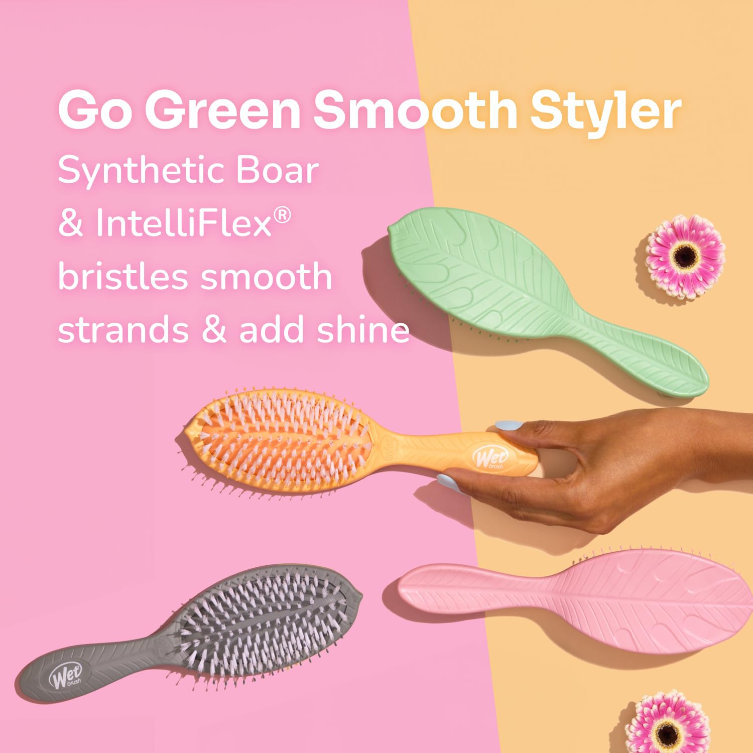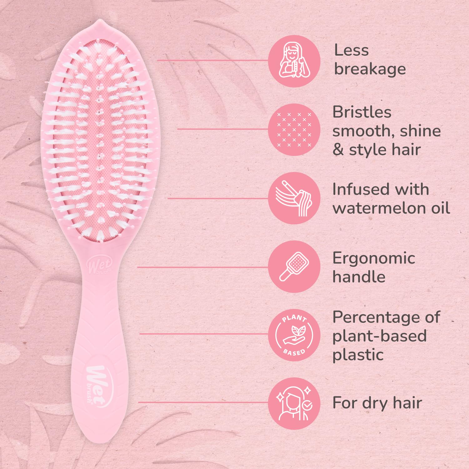 - Go Green Oil Infused Treatment & Shine: Achieve smooth, shiny, tangle-free hair with the Wet Brush Go Green Treatment & Shine brush, made with 58% plant-based plastic. Use it to brush dry hair to refresh styles and smooth frizz.